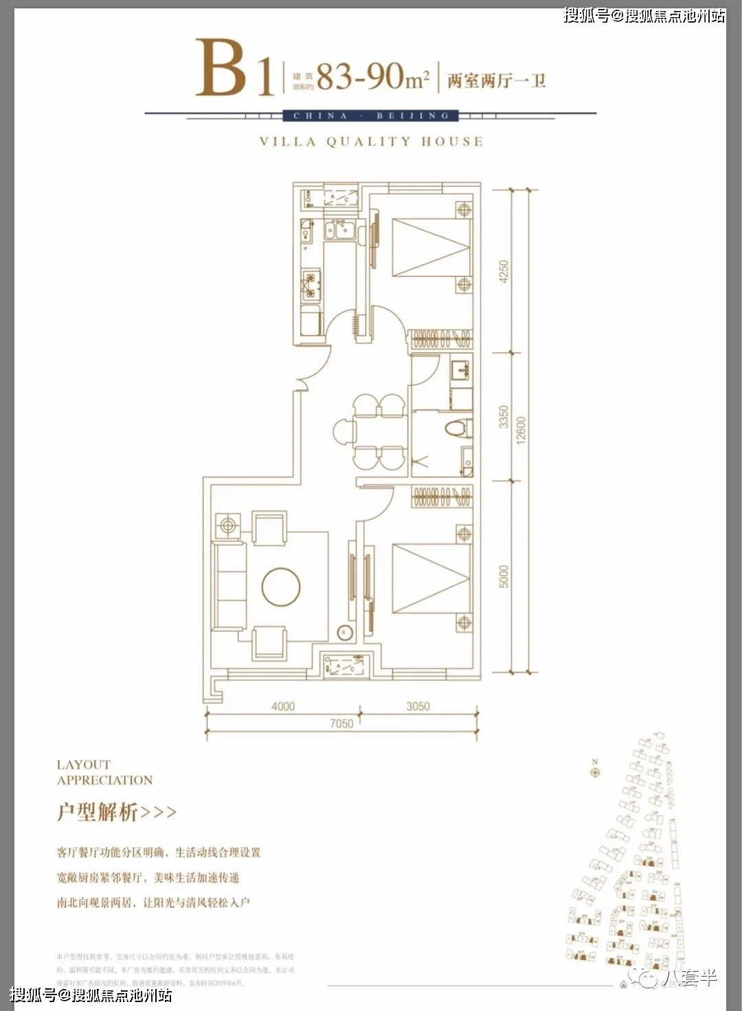 B户型两居室:83平米到90平米(户型为南北朝向)