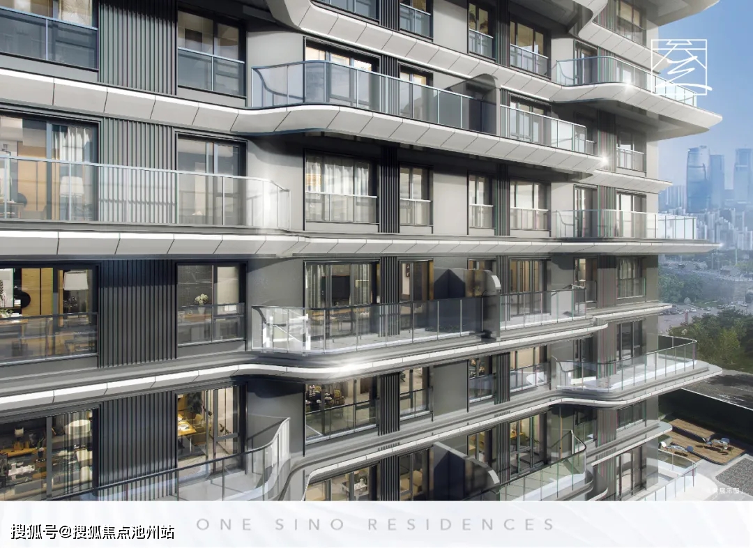 中海甲叁号院外立面效果图,大面积玻璃幕墙加上金属色呈现的灰色调,弥散出安静气韵,铝板勾勒的建筑线条充满流动性和曲线灵动之美,呈现着历久弥新恒静独特的建筑气质。