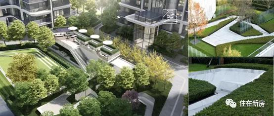 中海甲叁号院园林中大量运用先进豪宅项目深圳湾一号园林中使用的“折叠空间”概念,用几何雕塑语言,以抽象手法模拟自然山水的形态诠释,配以绿色植物形成折叠绿洲。化地势为线条,让园林与建筑风格形成统一。