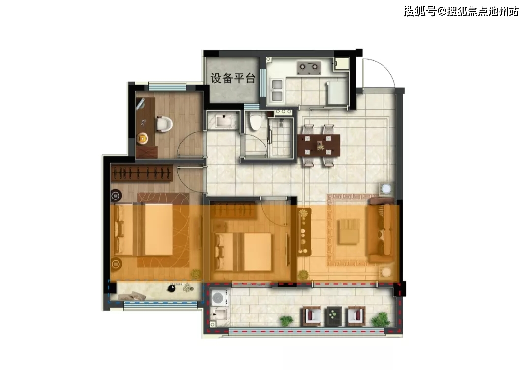 建筑面积约85㎡爆款小户,高效布局三房两厅两卫,规划超10米面宽的南向三开间,并尽可能减少过道的空间浪费,根据家庭所需提供了可变“第三室”空间,处处深研生活所需,成就令居者心生向往的居所。
