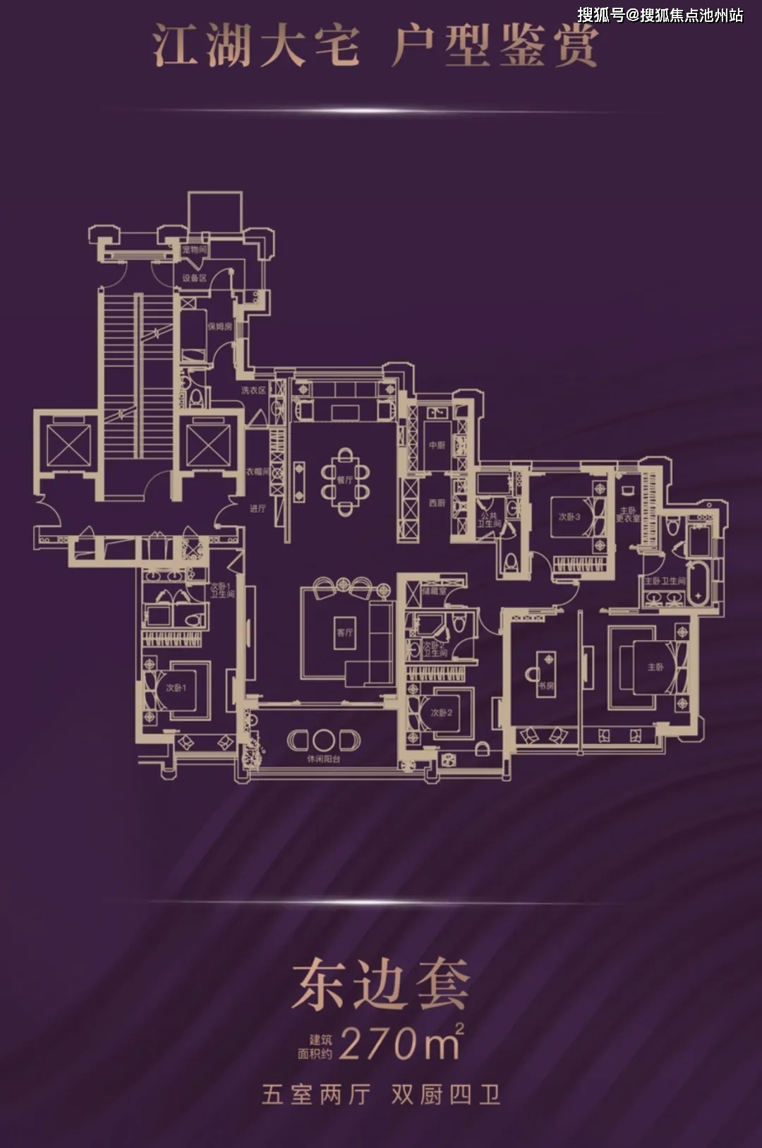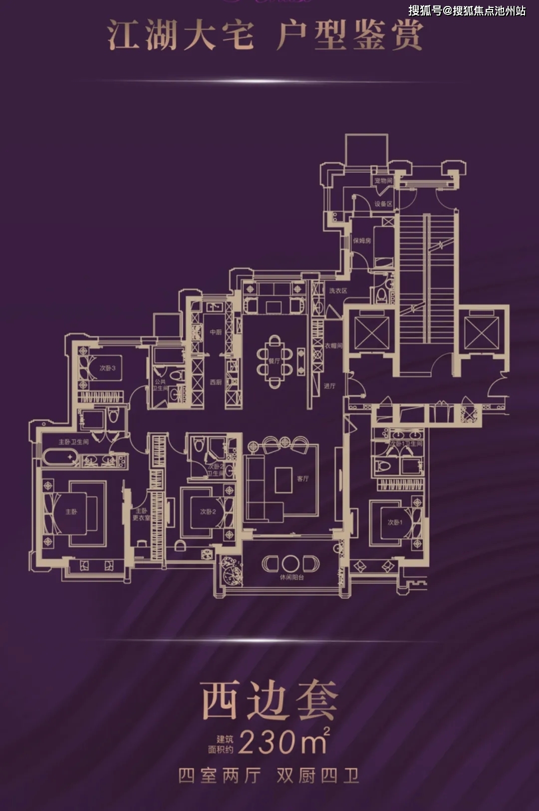 独梯独户230㎡西边套:4房2厅+中西双厨+4卫,大面宽舒适度极高。