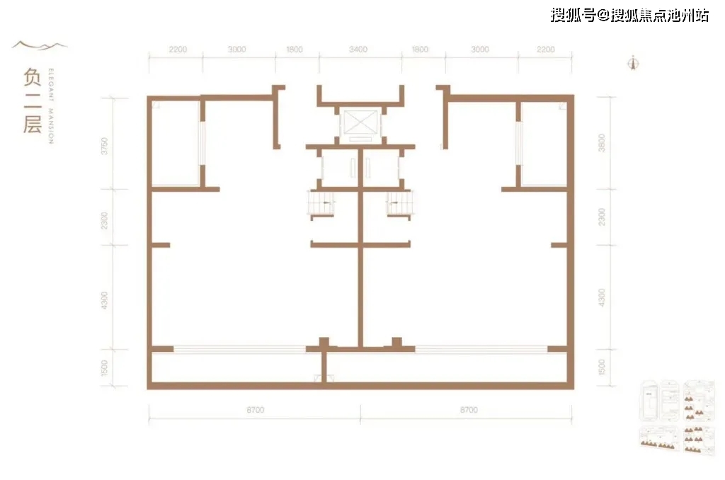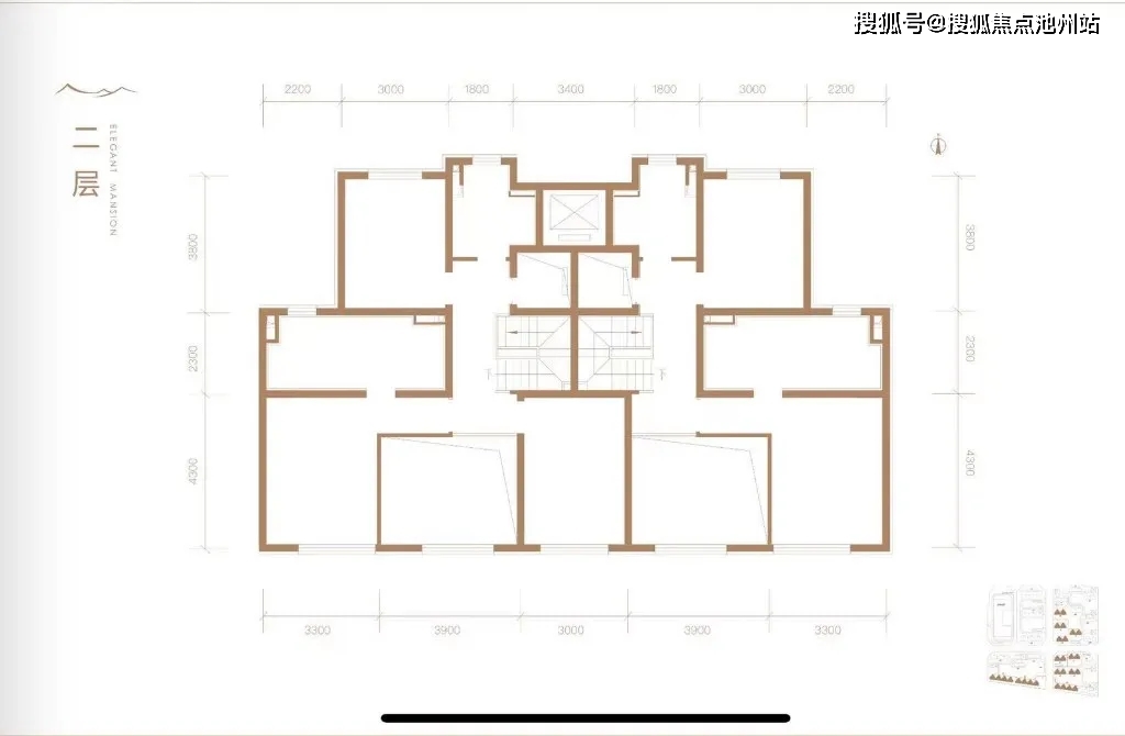 一梯两户,电梯双开门,门口有独有电梯间,对于下叠而言,除了共用电梯,还有私家电梯预留位置。透过户型图,已经可以感受超大面宽了。