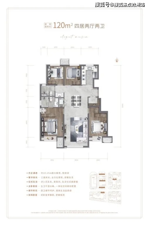 这个户型格局更为紧凑实用,同样南北通透、赠送飘窗,80%的得房率也算理想了。这为预算只有300多万的置业者提供了入住龙湖的优质机会。