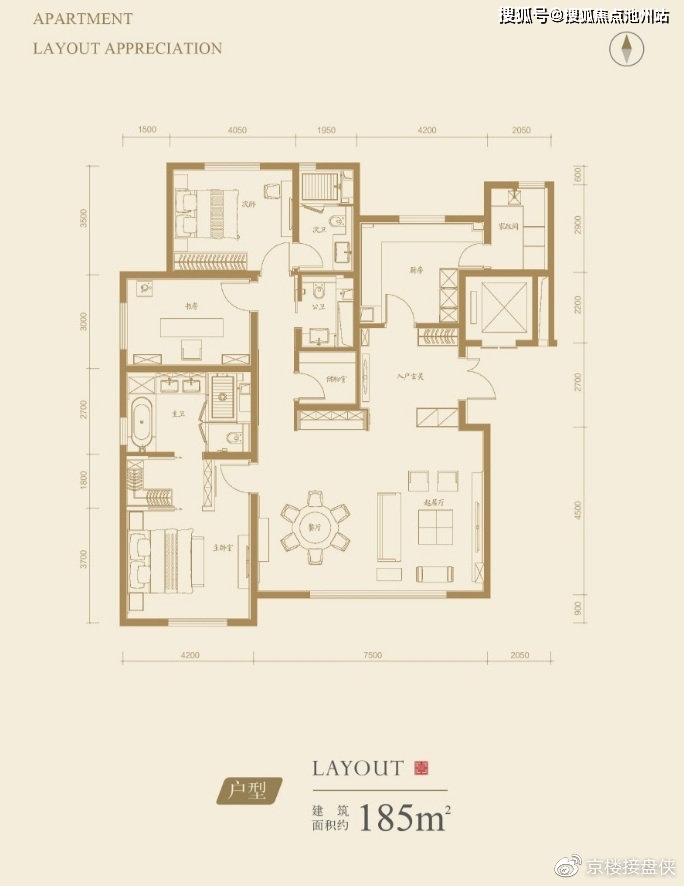 185m²客厅餐厅相连,空间开阔,卧室南向主卧,附带独立衣帽间及卫生间,私密性良好,厨房明厨,通风效果良好7.5米面宽客厅,主次卧全套房设计,多功能室+储藏室+家政间,空间灵活且保证家庭收纳功能充裕。