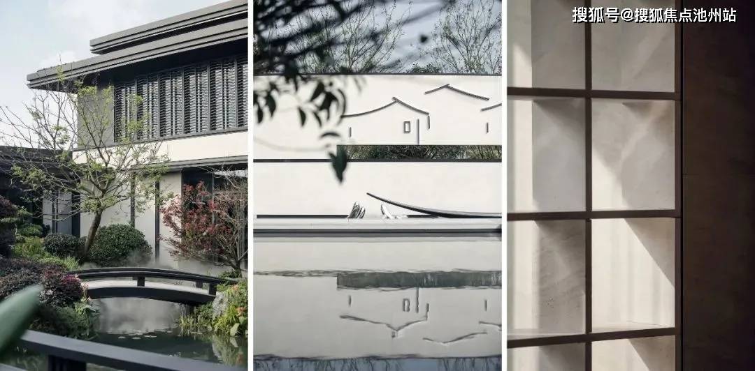 独具江南韵味的建筑斜屋顶,体现了中国古典民居“以和为美”的人文思想,以其自然环境和人文环境和谐相处的整体美,呈现江南水乡古镇的空间魅力,取其精粹用现代的设计语言手法融入空间,演绎出传统与现代的精彩对话。