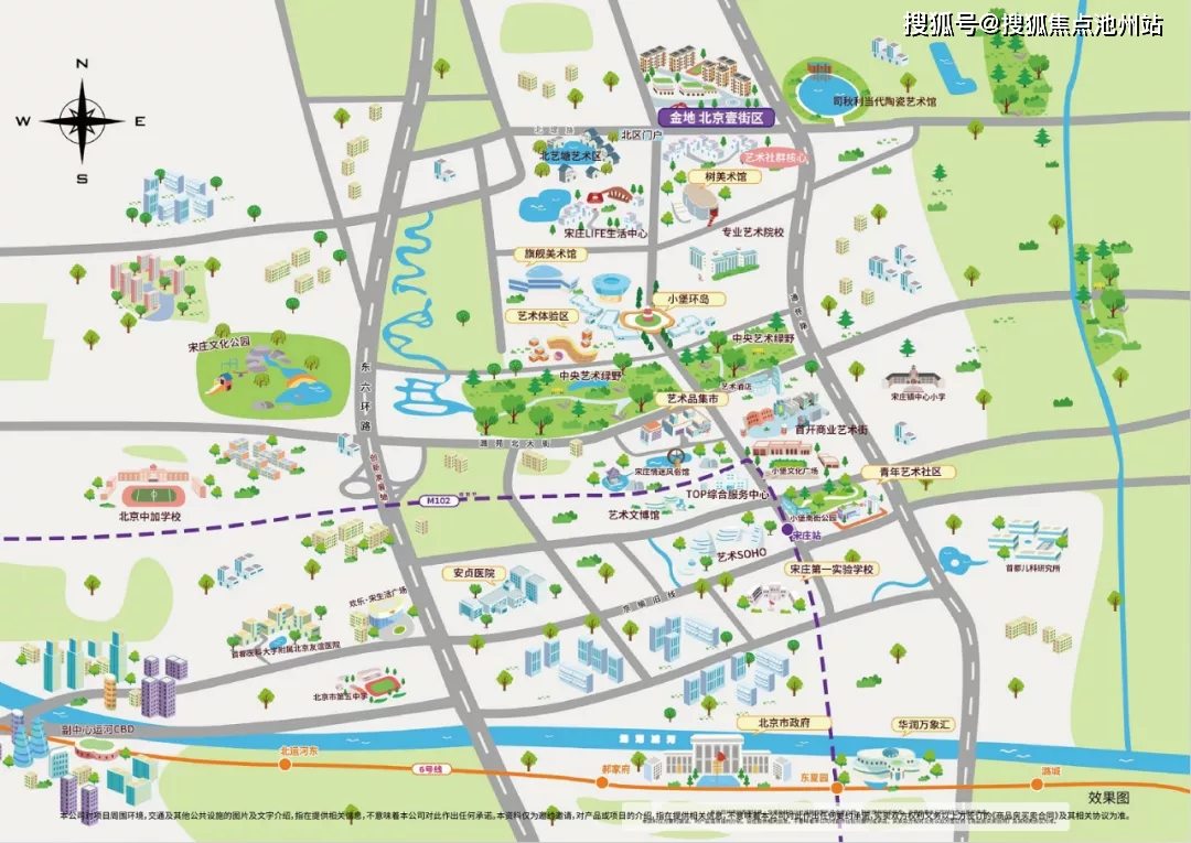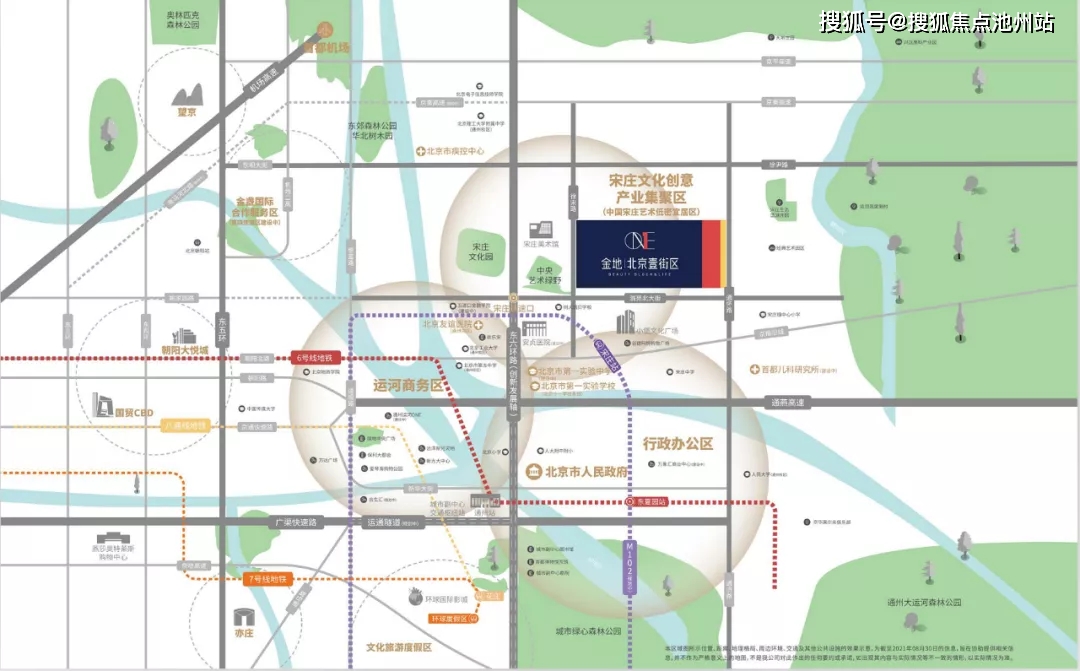 副中心核心区向北2公里的宋庄,未来没有工业和高楼,完全是一个低密而且纯粹的居住板块,是承接运河CBD客群的排名前列舒适居住区。