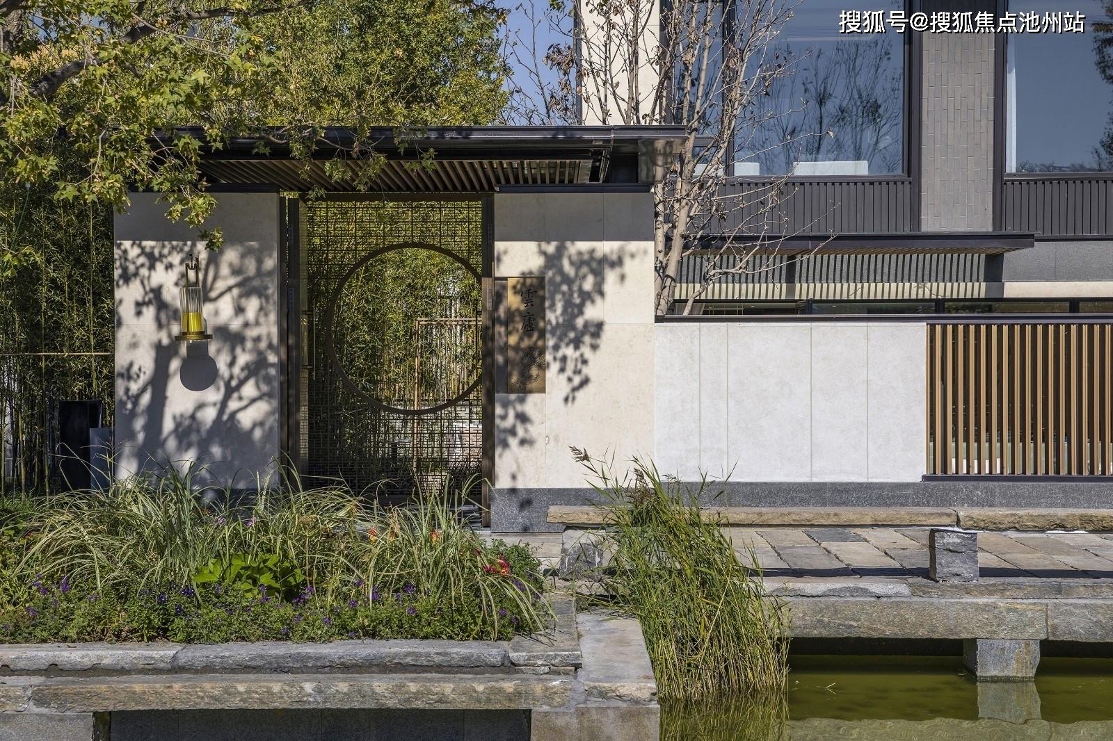 示范区空间规划借鉴江南园林造园手法,虚空间以静水池为中心,廊道、桥梁、石径等空间围绕静水交替使用,让空间增添了多种变化,富有层次感。建筑依水而建,与水面倒影出的天光云色,增强景观的空间延续,产生无限的空间感。