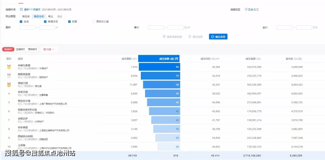 上海松江3月成交数据新鲜出炉,
