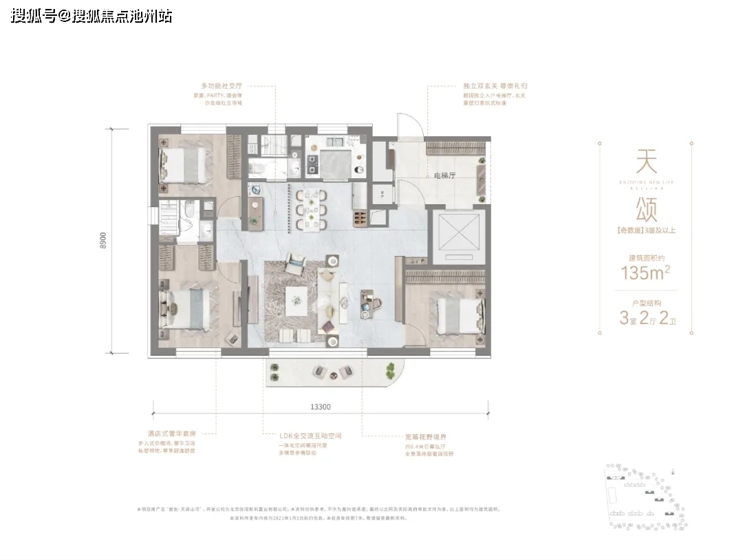 首创·天阅山河通过对于人性、对于生活美学的理解,按照不同家庭结构、生活习惯、年龄阶层推出全生命周期户型,项目总规划508户,设计出109㎡、135㎡和157㎡三种户型,是京西财智菁英高阶改善需求的优选。