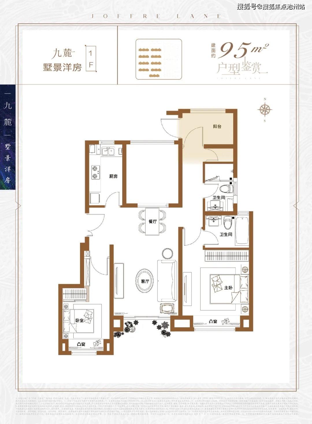 产品方面,项目主力产品为建面约95㎡花园洋房,做到了三开间朝南+南北通透+朝南卧室带飘窗+主卧套房设计。