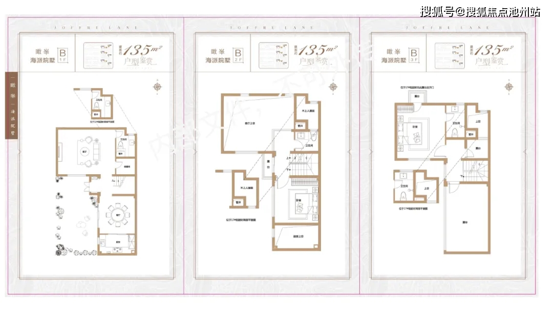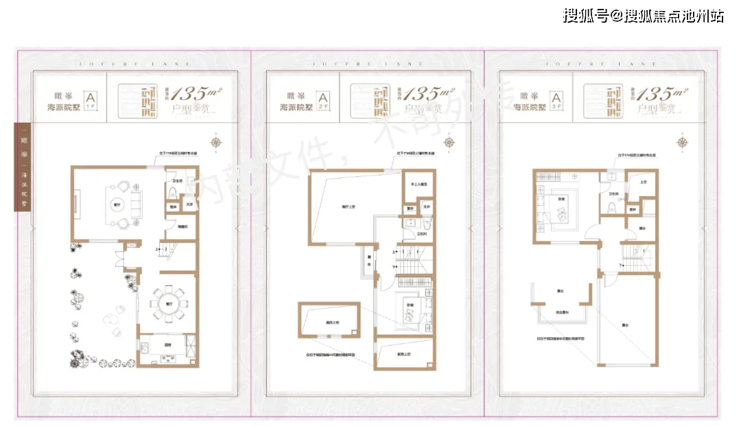 以135㎡联排别墅产品为例,该户型层高约3.3米,南向开间约7.6米,灵动空间包括约21㎡露台,约30.4㎡花园,满足购房者们“有天有地有花园”的别墅居住体验!