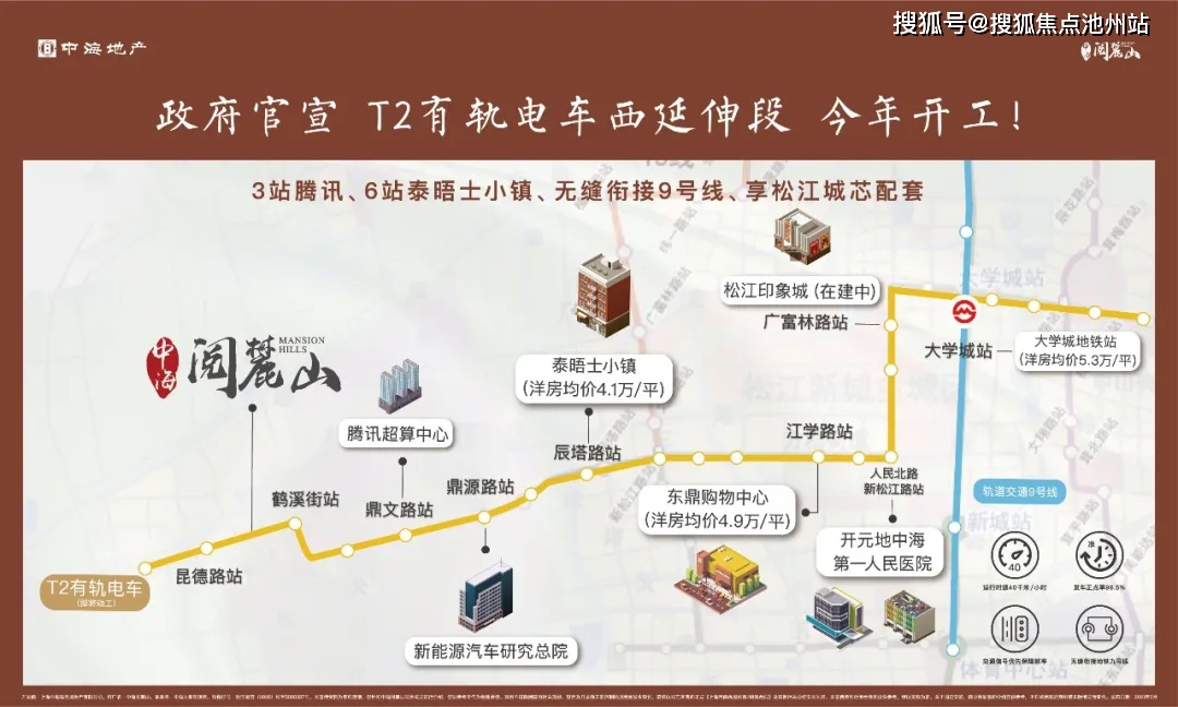 交通配套:G60沪昆高速出入口3分钟、G1503绕城高速5分钟;公交路线:松江67路直达佘山地铁站,松江20路直达松江新城地铁站,未来规划有轨电车T2延伸段。出行方式多元便捷;