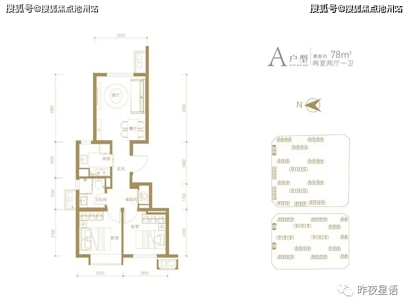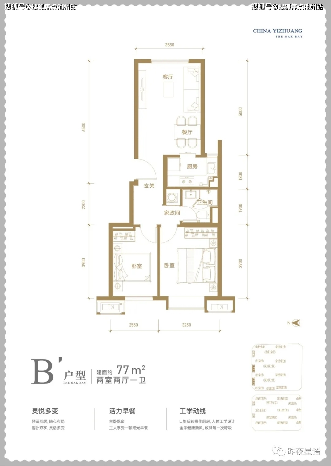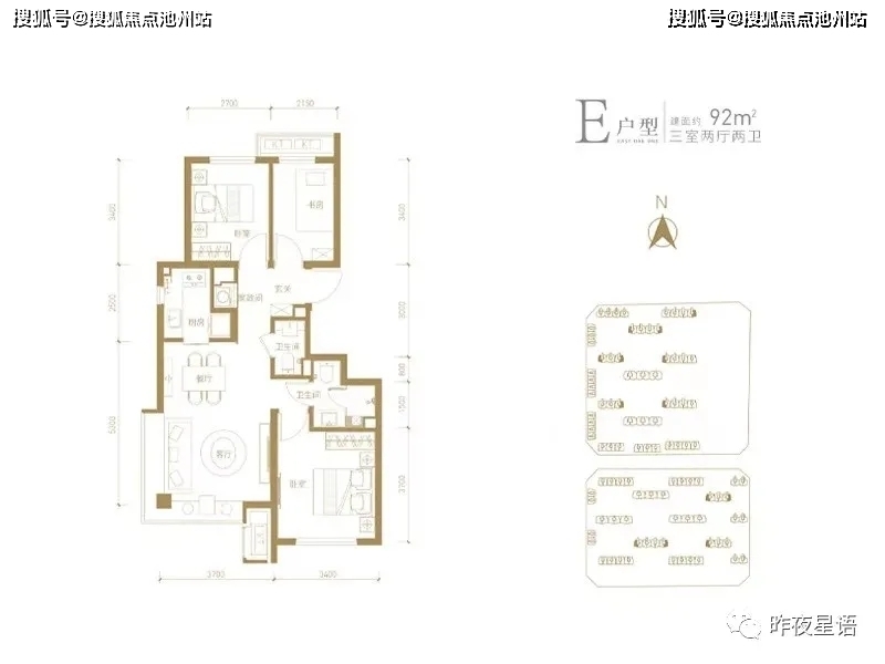 【得房率】:两居68.4%-76%,三居73%-79%,四居77%-79%