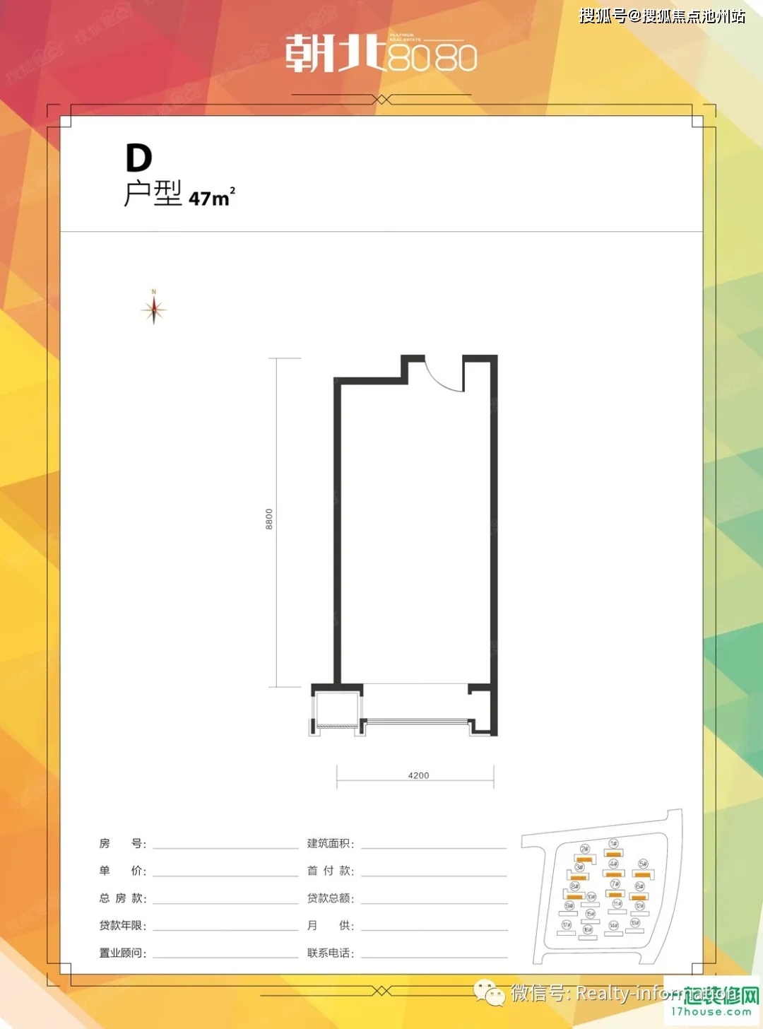 朝北8080项目位于通州区,政府依托温榆河,投资上亿打造沿河 CBD、“国家电子商务示范基地 “ 可容纳3-5万高端商务人士工作 生活 ,已经确定入驻的企业:阳光保险 集团总部、紫光科技园、金融街 园中园等几十家知名金融、科技类企业。项目共17栋楼,总户数1540户,每栋楼均为七层带电梯,首层4.5米层高loft,七层坡屋顶设计loft,较高点7.8米,超高使用率,项目楼栋分南区和北区,南区主要为一梯三户大户型,北区主要以小户型为主,目前在售房源60套,北区主力户型为全南向47平米开间,南区主力户型为89平米全南向两居,80平米和107平米南北通透三居,总价130万-450万。